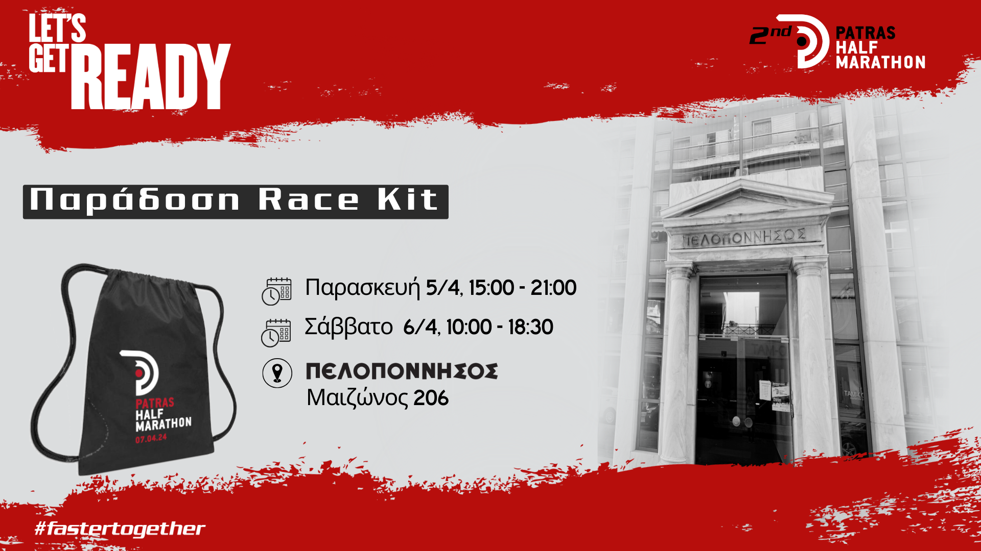 Η γραμματεία της διοργάνωσης και η παράδοση του race kit των συμμετεχόντων θα φιλοξενηθούν στις εγκαταστάσεις της εφημερίδας ΠΕΛΟΠΟΝΝΗΣΟΣ επί της οδού Μαιζώνος 206 και Παπαφλέσσα στην Πάτρα.