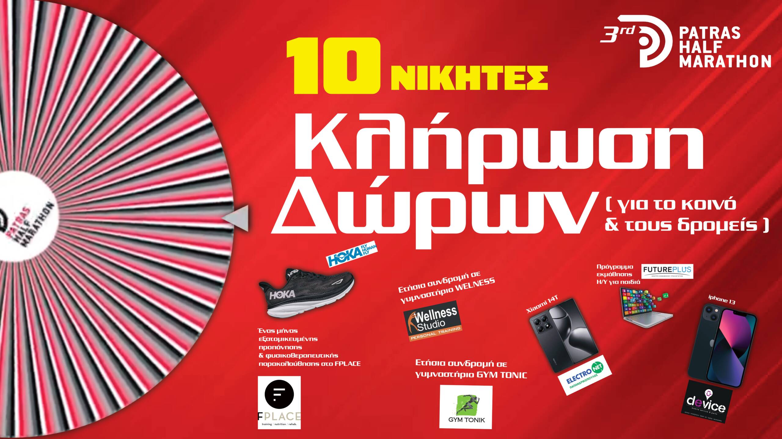 - 12:35 για τους τερματίσαντες του 5αριού και το κοινό που θα προμηθευτεί κουπόνι συμμετοχής από το περίπερο της διοργάνωσης